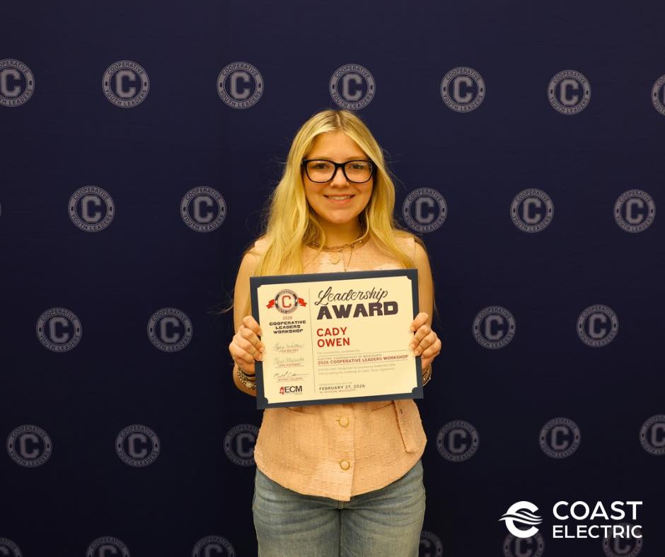 MEDIA RELEASE FROM COAST ELECTRIC Kiln, Miss. – Four outstanding high school juniors represented Coast Electric at the Electric Cooperatives