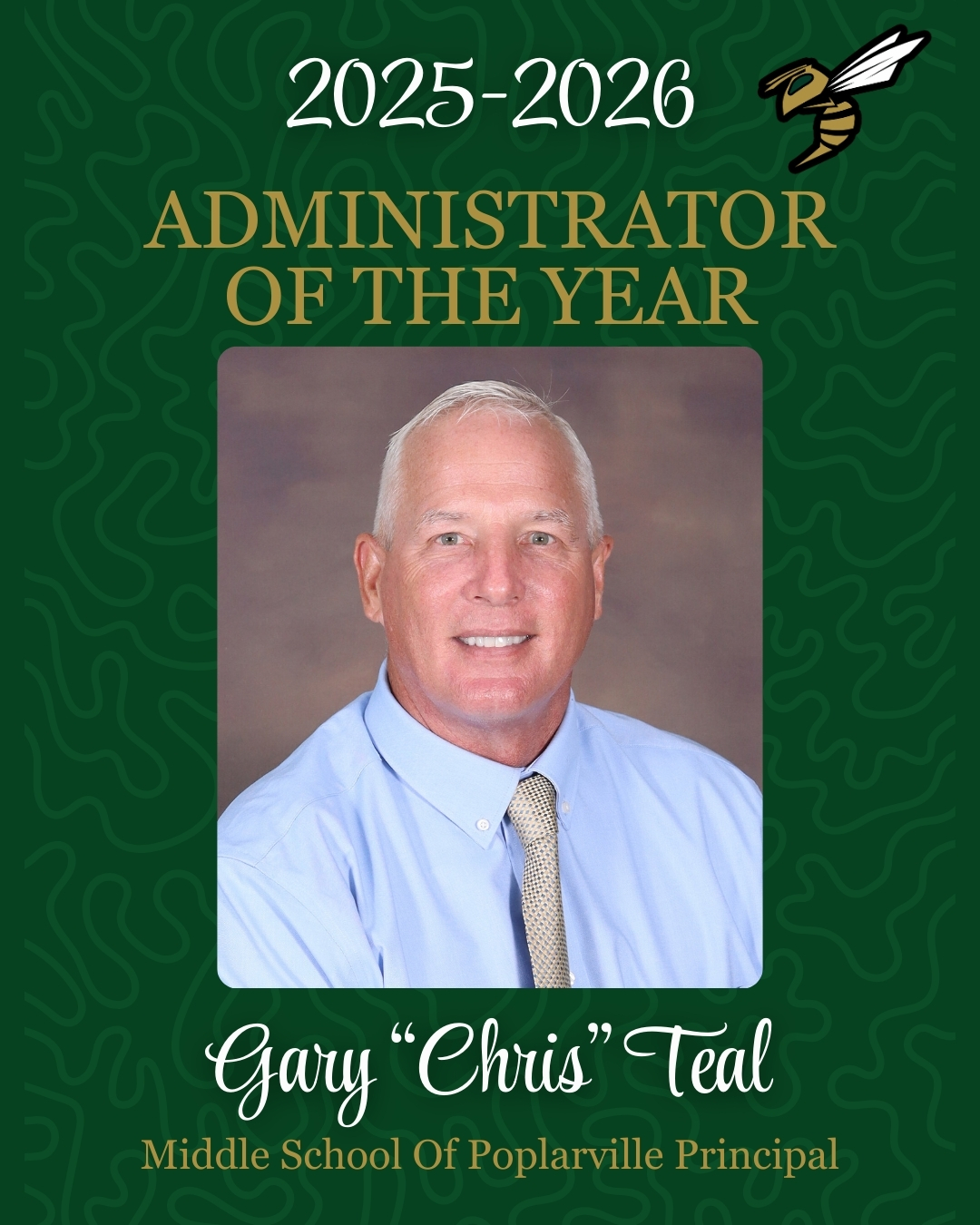 🎉 Congratulations to Gary “Chris” Teal on being named the 2025–2026 Poplarville School District Administrator of the Year!