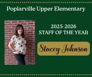 Poplarville Upper Elementary is proud to announce Stacey Johnson as our 2025–2026 Staff of the Year! Having grown up in a military family, Stacey now proudly calls Poplarville home. She