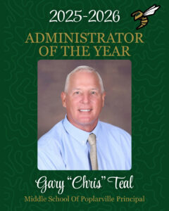 🎉 Congratulations to Gary “Chris” Teal on being named the 2025–2026 Poplarville School District Administrator of the Year! Your leadership, dedication, and commitment to excellence make a lasting impact on