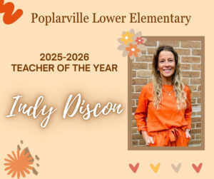 🎉 PLE Teacher of the Year: Mrs. Indy Discon! 🎉 Poplarville Lower Elementary is proud to announce that Indy Discon is PLE’s Teacher of the Year for 2025-2026! Mrs. Indy