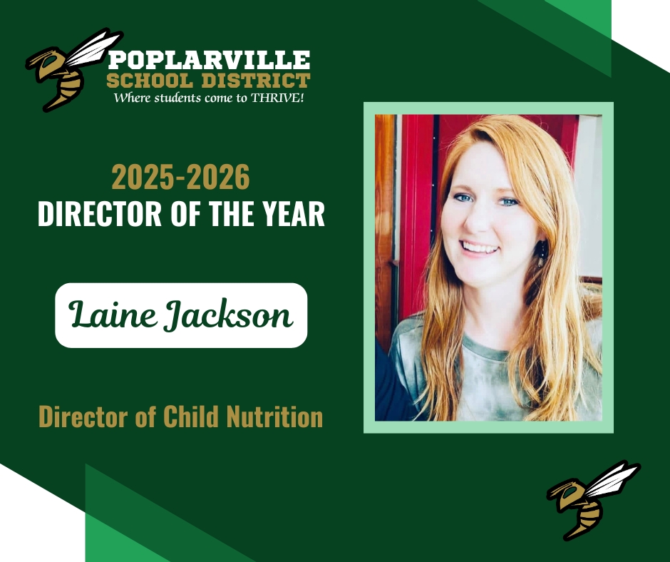 🎉 Congratulations to Laine Jackson, Director of Child Nutrition, on being named Poplarville School District’s 2025–2026 Director of the Year!