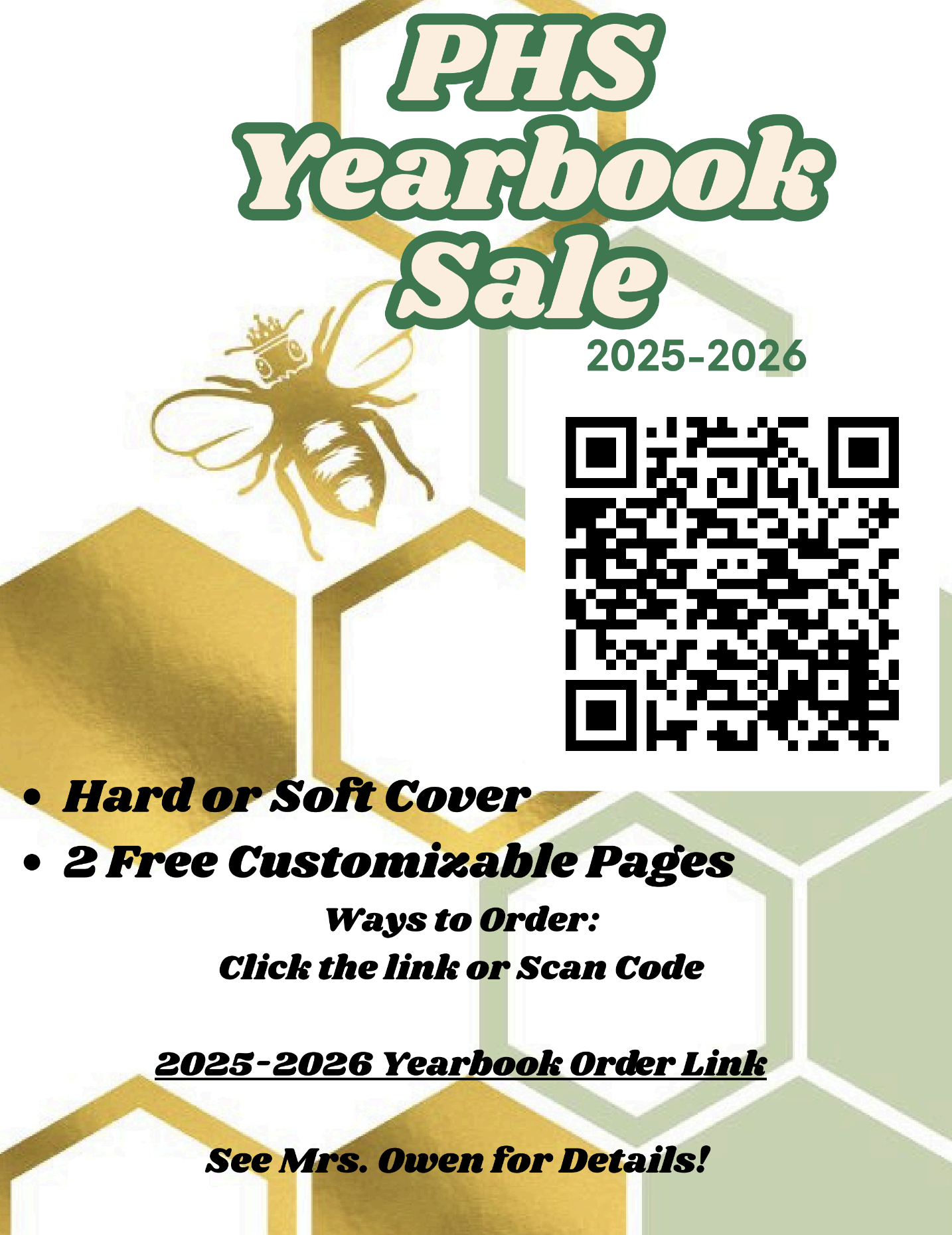 2025-2026 PHS Yearbooks are now on sale! Please contact Mrs. Owen for details!