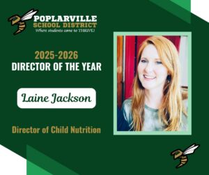 🎉 Congratulations to Laine Jackson, Director of Child Nutrition, on being named Poplarville School District’s 2025–2026 Director of the Year! Laine’s leadership and commitment to excellence ensure that our Child