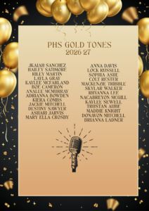 Congratulations to the PHS Gold Tones Concert Choir for the 2026-27 school year!