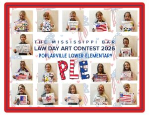 Poplarville Lower Elementary – Grade: K 1st Place: Duke Sones 2nd Place: Lila Claire Gentry 3rd Place: Waverly Davis Honorable Mention: Vincent Shumate Honorable Mention: Evelyn Miller Poplarville Lower